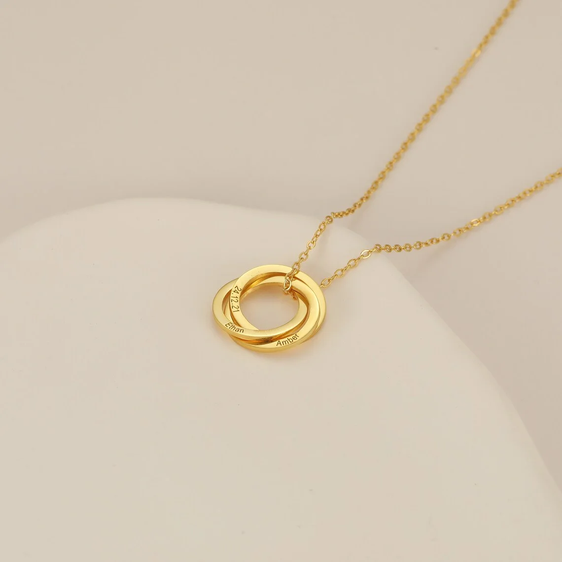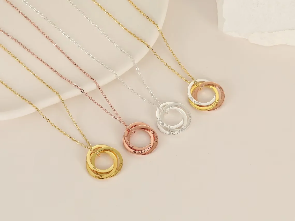 Collier circulaire imbriqué, gravure personnalisée, nom, Date, chiffre romain, bijoux de famille personnalisés, cadeau pour elle