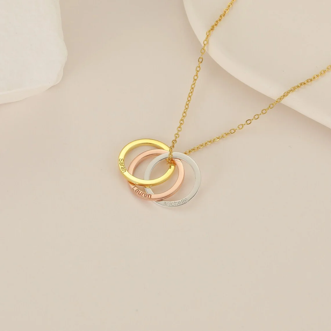 Collier cercle emboîtable, gravure personnalisée, nom, Date, chiffre romain, bijoux familiaux gravés personnalisés, cadeau pour elle
