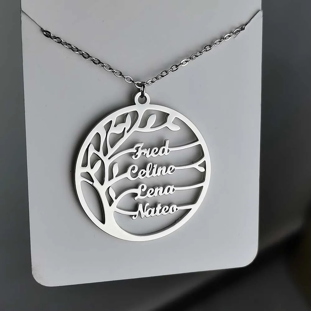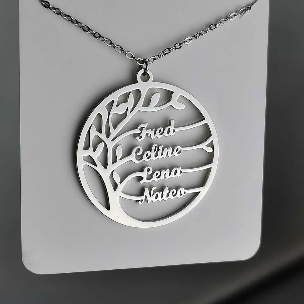 Collier de famille nom collier acier inoxydable arbre généalogique arbre généalogique or arbre de vie collier cadeau de fête des mères