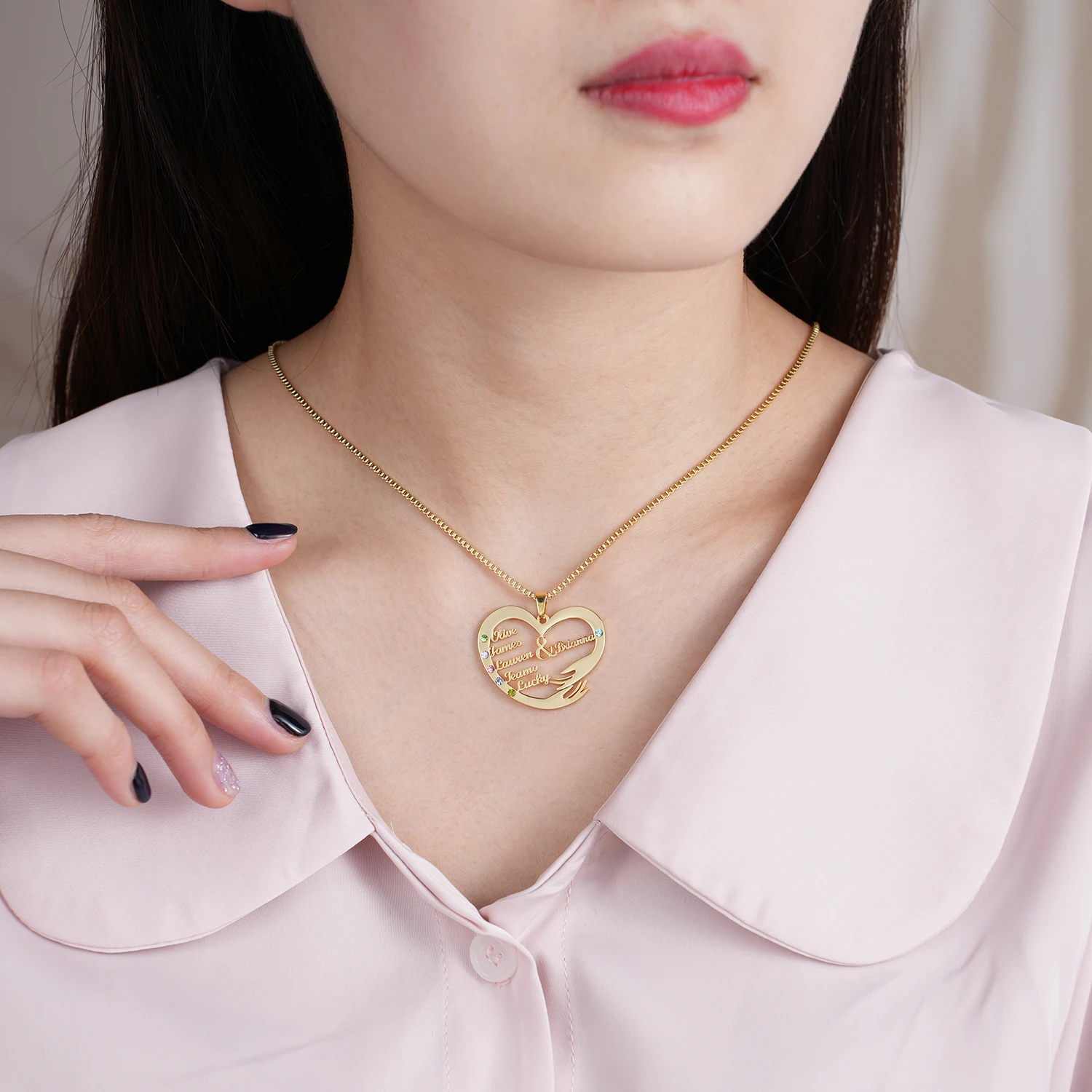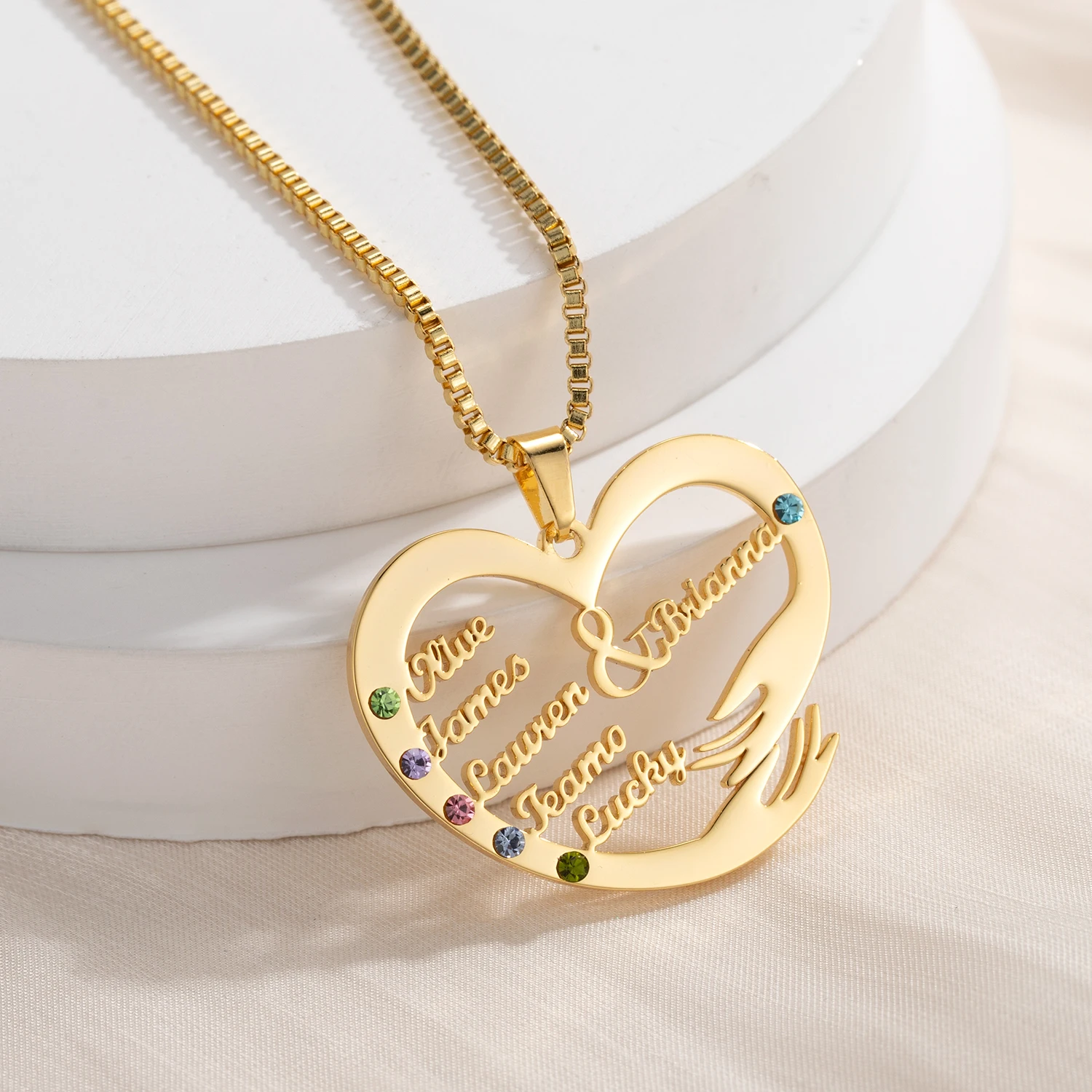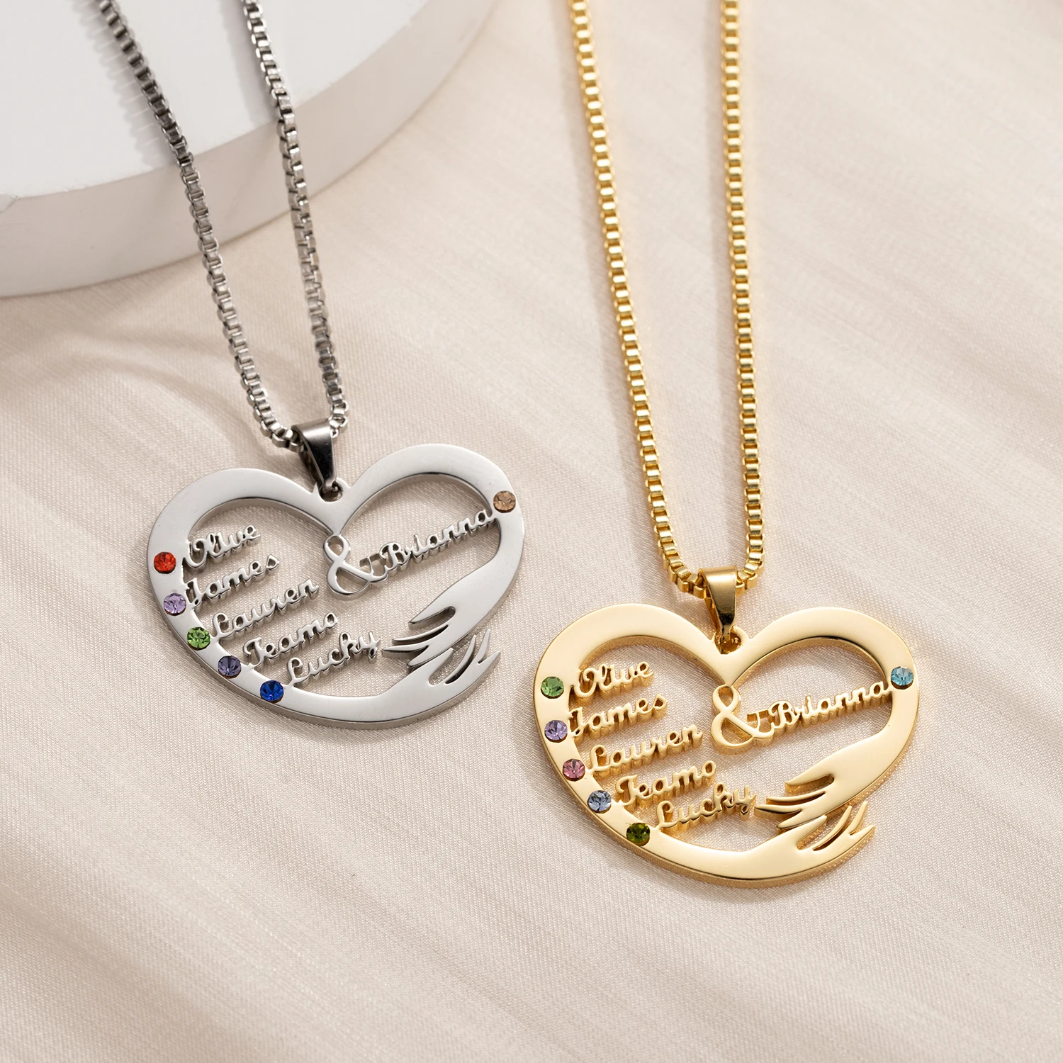 Bijoux personnalisés avec pierre de naissance, vous pouvez choisir de personnaliser de 1 à 6 noms.